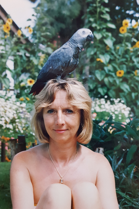 Anna e um papagaio-do-congo. Foto: Acervo pessoal.