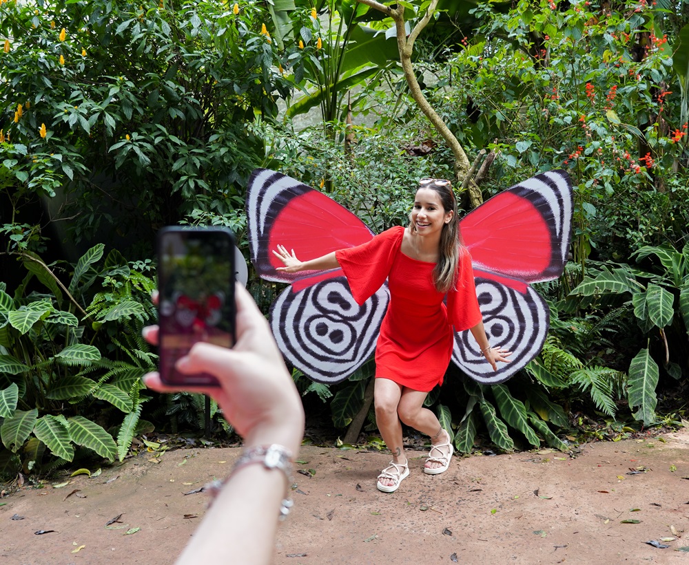 Então, saindo do Borboletas e Beija-Flores, há um espaço com três grandes asas de borboletas, de diferentes cores, tamanhos e formatos, perfeito para quem é apaixonado por elas!