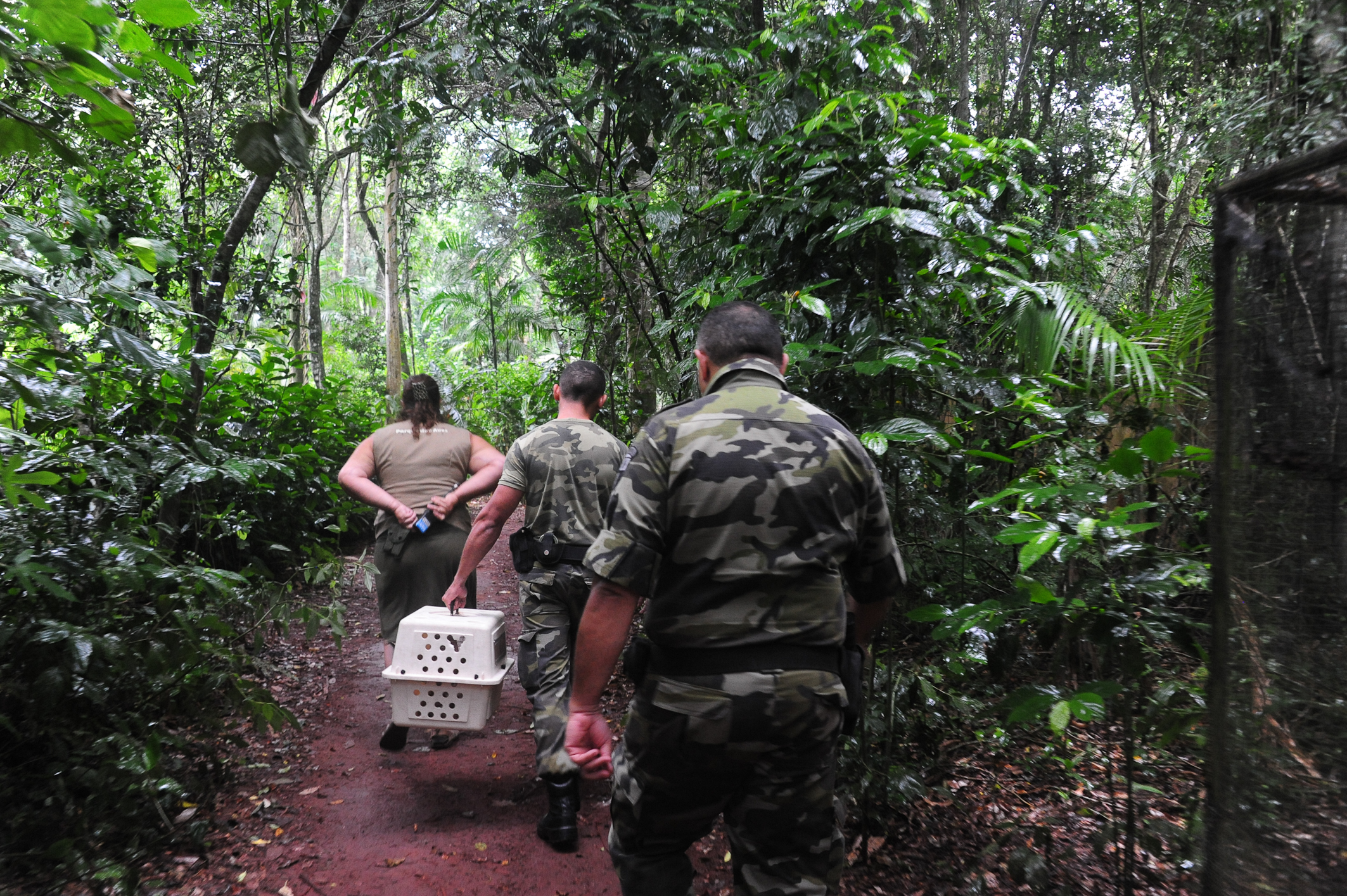 Pausa para discutir os últimos detalhes da soltura. (agentes da Polícia Ambiental e nossa Diretora Técnica, Dra. Yara Barros, o Dr. Crosta, que presta consultoria ao Parque, e Ligia Oliva, veterinária do Parque).