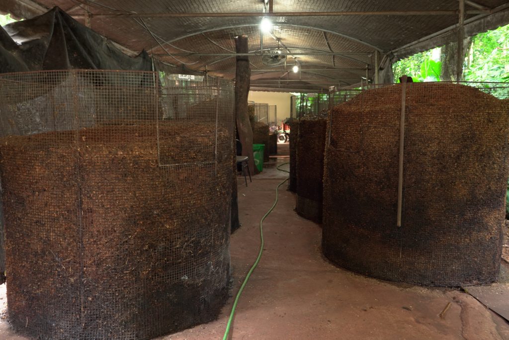 Tudo tem início com a ajuda dos colaboradores do Parque das Aves, que levam os resíduos orgânicos para barris feitos em tela, misturando-os com matéria seca como palhas e serragem, para evitar a proliferação de insetos e mau cheiro. Durante o processo, a aeração do composto é controlada, pois a umidade e a temperatura podem chegar até 55°C.