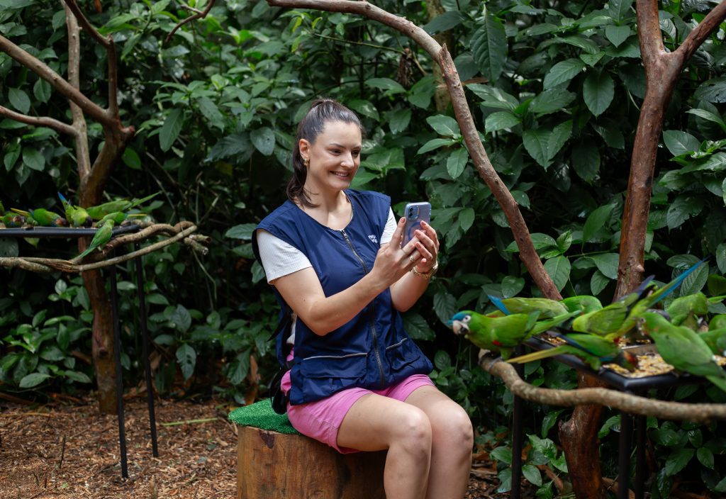 A forma de visita imersiva dos viveiros permite que visitantes de todas as idades observem aves voando e se comportando naturalmente, um grande diferencial para famílias e amantes da natureza.