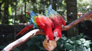 “Aqui no Parque das Aves, os visitantes podem conhecer o urubu-rei, a maior e mais majestosa espécie de urubu. E é interessante notar a ausência de penas na cabeça e pescoço, características que ajudam os urubus a não se contaminarem durante a alimentação”, comenta Tays.