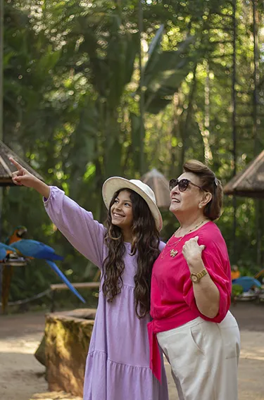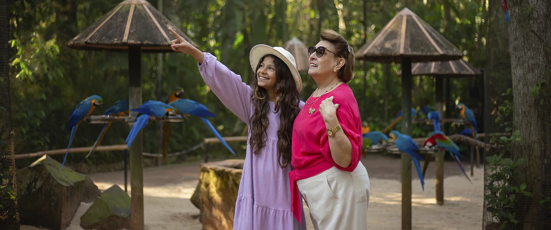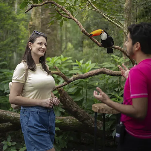 Con seis aviarios de inmersión, usted podrá conocer de muy cerca aves de la Mata Atlántica. Conocerá las pavas yacutingas y el paují de Alagoas, observará el increíble tucán toco y su enorme pico, y experimentará una bandada de casi 100 guacamayos volando sobre su cabeza.